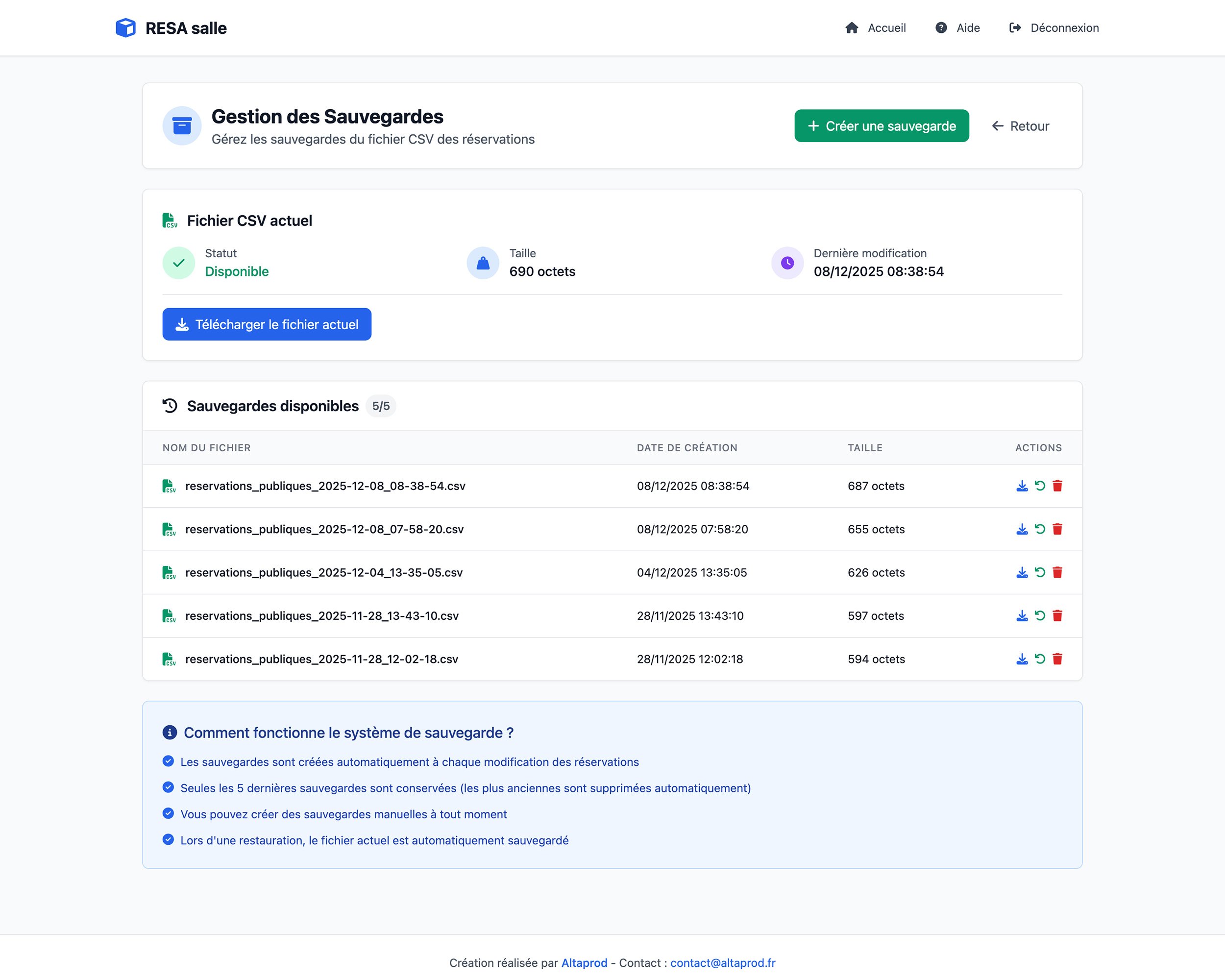 🔒 Sauvegardes automatiques : Backups quotidiens avec rétention sécurisée.